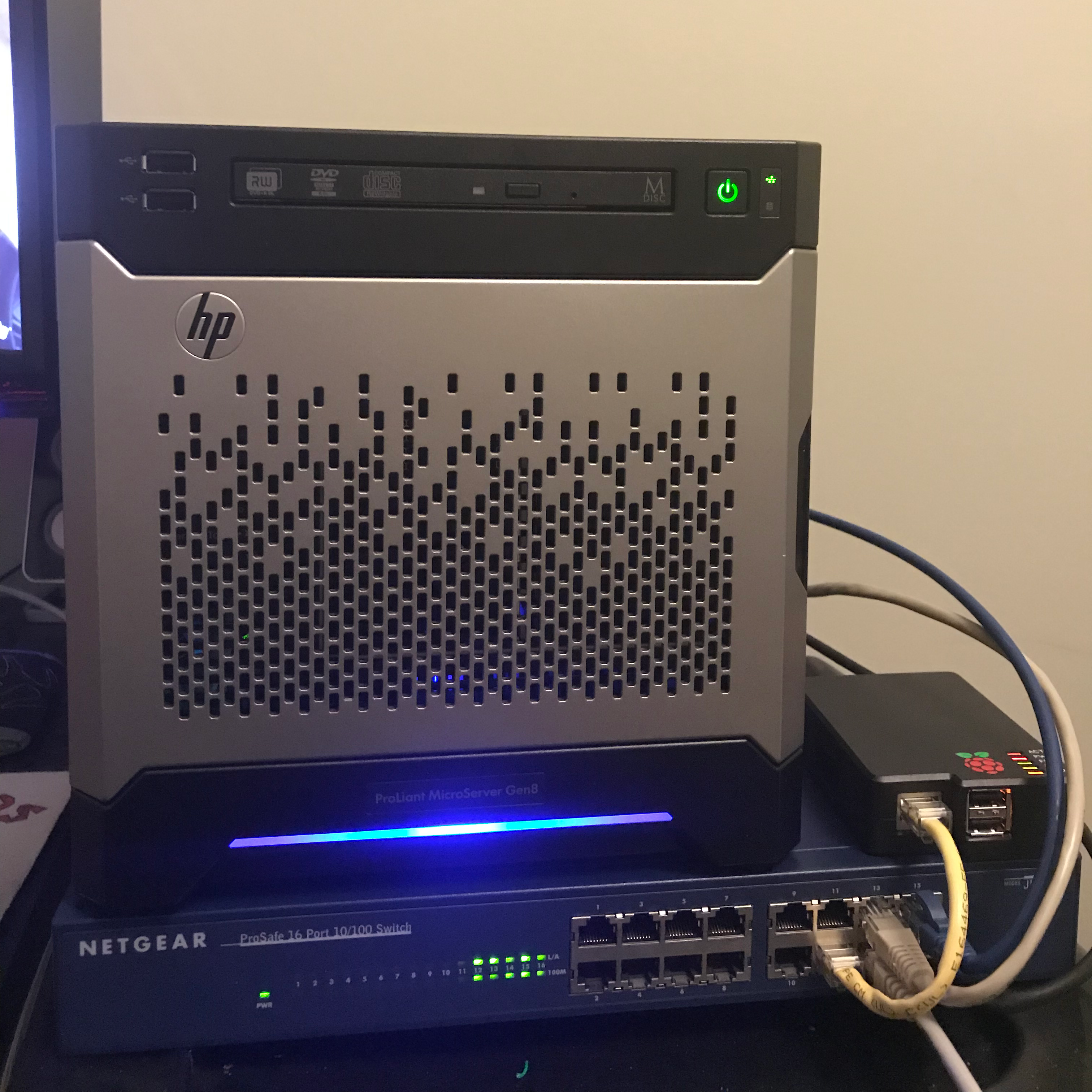 The last iteration of my server has been for the last few years, a HP Microserver Gen 8, which started with VMWare ESXi, but later got swapped out for Proxmox. It's main purpose has always been a NAS, firstly running as an off-site backup for my university work, and later on-site, backing up my PCs. It also runs any services I need to build projects, automate my home, and anything else I feel like playing with. The Microserver is great, it's small enough to run at home without needing to dedicate a whole room to servers, and light enough on the power bill that it's actually worth it over paying for SaaS platforms that do the same tasks.
