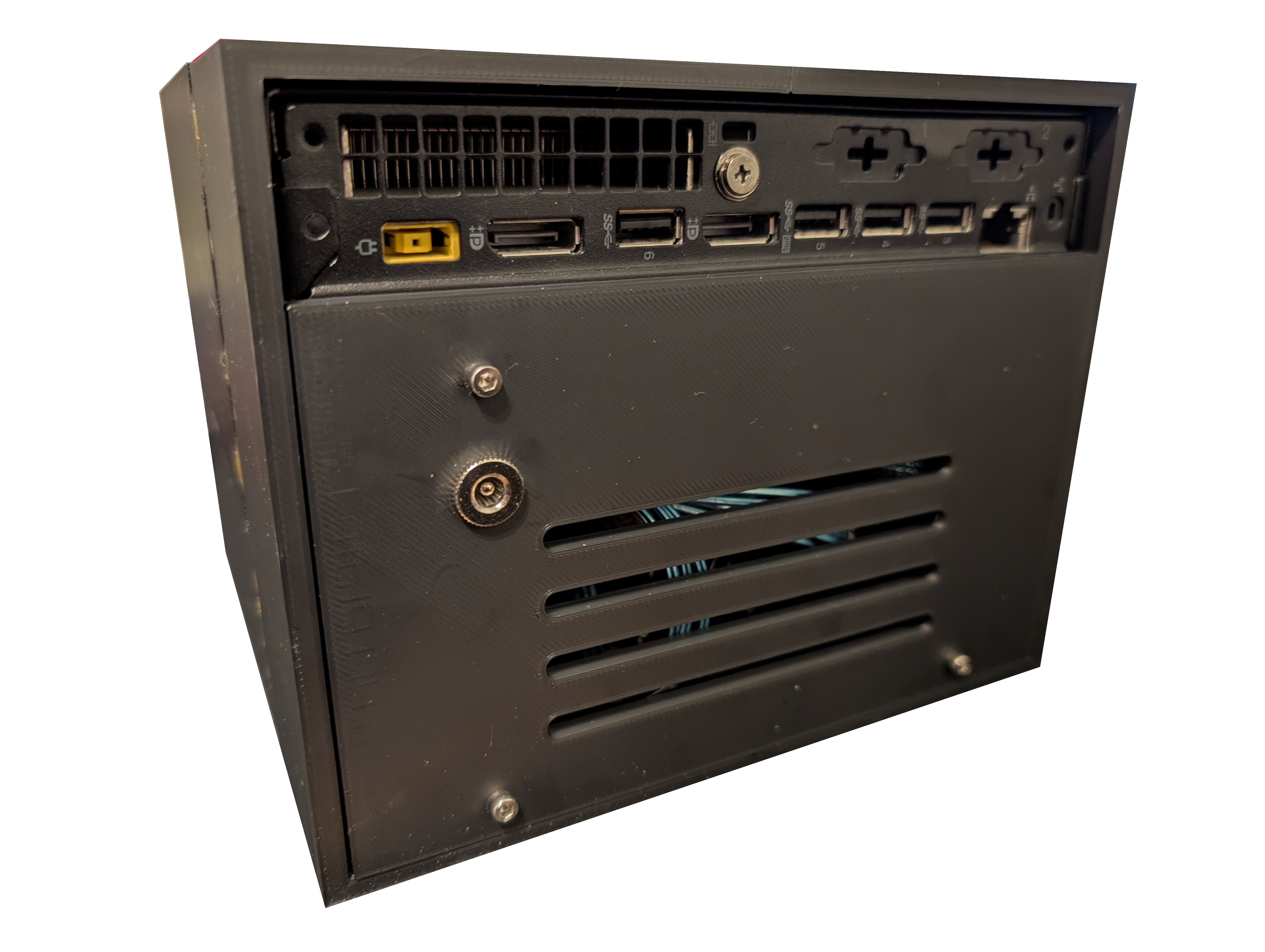 The remaining two options I considered were a standard PC case, that would just about fit into the rack on it's side. Or a mini-PC. After some consideration (and inspired by this 3D model) I opted for a Lenovo ThinkCentre M710q. This is missing a couple of features of the M9xx series, but nothing I'd miss. Mostly a full size PCIe port. I also opted for a 7th Gen Intel chip to take advantage of the plummeting prices of anything not capable of running Windows 11, my servers are almost exclusively Linux.